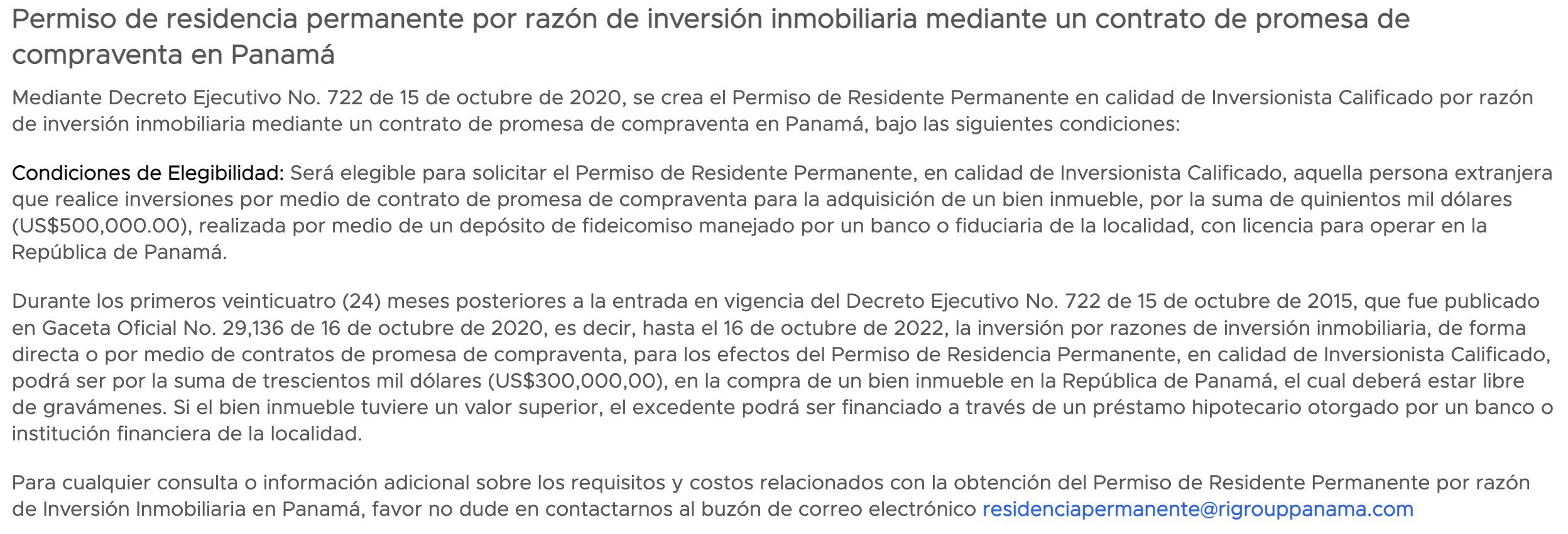 Permiso de residencia permanente: Contrato de promesa de compraventa inmobiliaria en Panamá